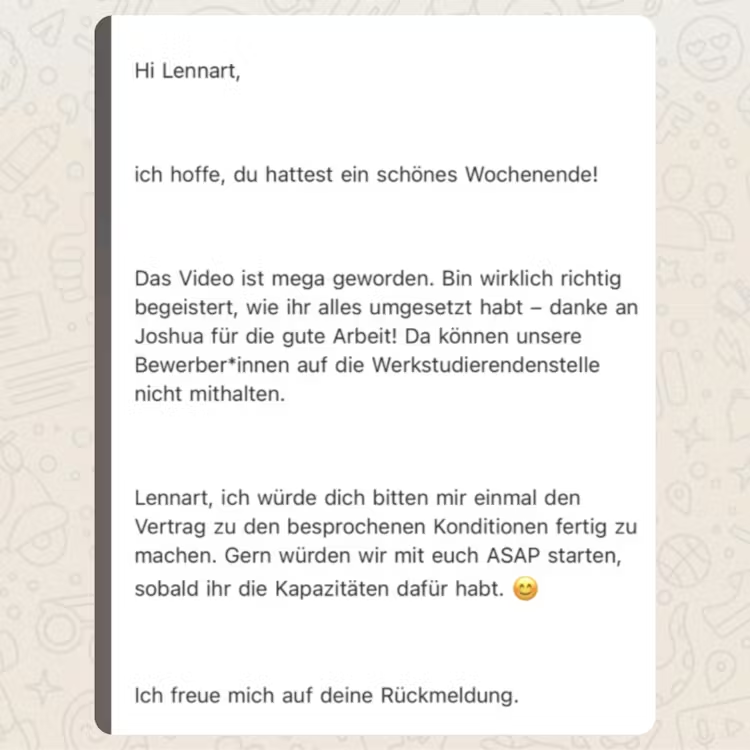 Du teilst mit uns deinen Content. Das heißt Skripte plus dein Rohmaterial.